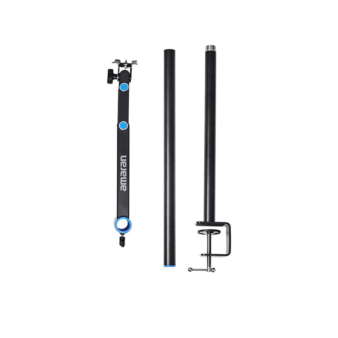 Desk Clamp Stand fra amaran er en alsidig og nem måde at montere Verge- eller Verge Max-LED-paneler på. Perfekt til desktop-opsætninger. Den har to midtersøjler og en sidearm til præcis montering af én lampe.