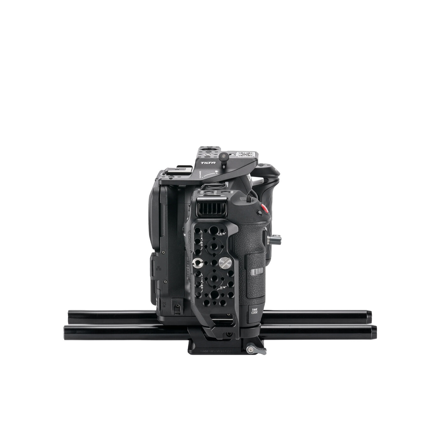 Den modsatte sideplade har gevind, som gør det hurtigt og nemt at montere kameraet i en vertikal opsætning. Toppladen er designet, så den giver fri adgang til det originale C80 topgreb, hvilket gør dette bur ideelt til brugere, der ønsker at bevare det oprindelige håndtag.