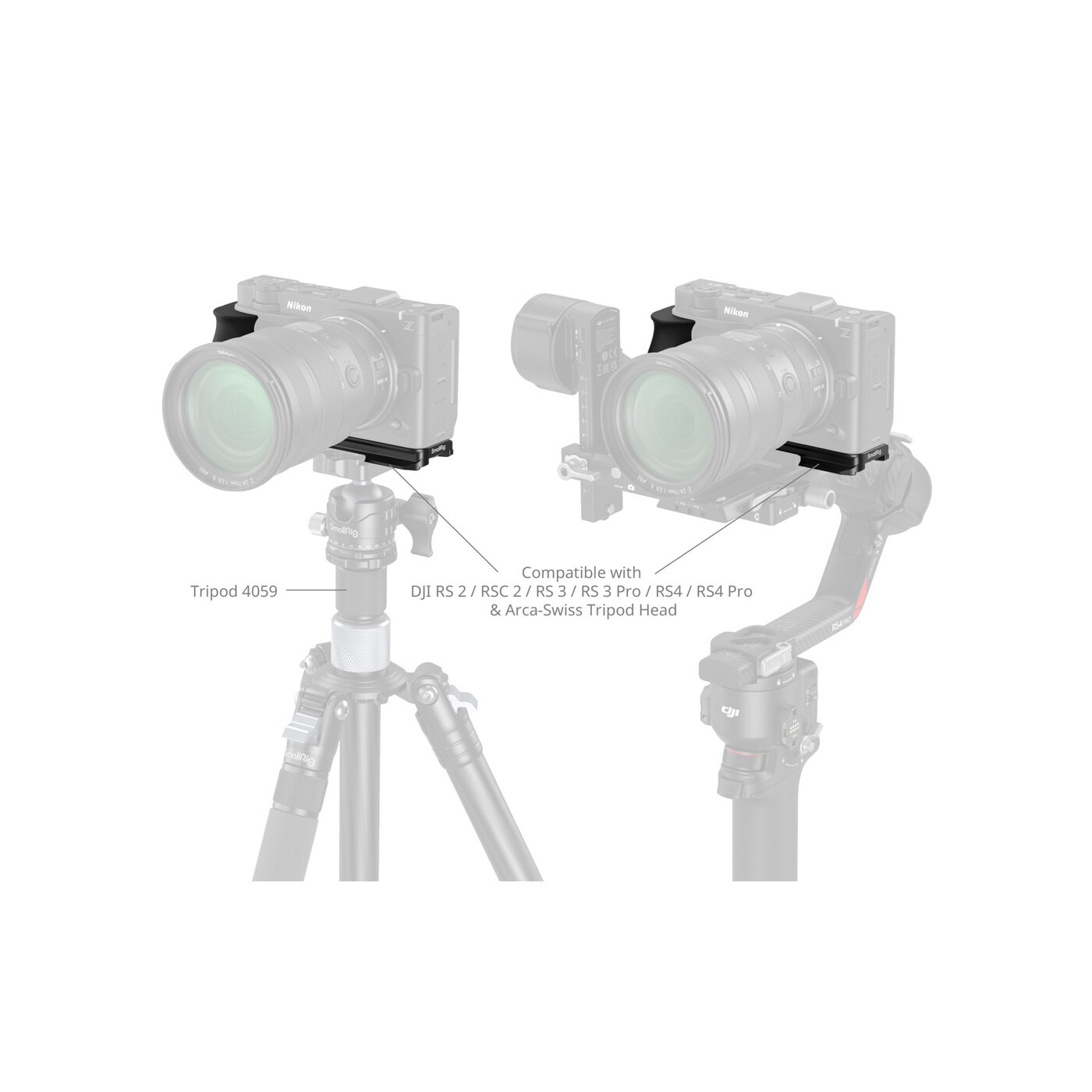 SmallRig 5466 L-formet monteringsplade med silikonehåndtag til Nikon ZR er designet til at forbedre kamerabevægelse og beskytte kamerabasen. Det slanke, integrerede design former sig sømløst efter kameraet for en tæt pasform og beskytter bunden mod stød under optagelser. Det ergonomiske silikonehåndtag giver overlegen komfort ved længere tids brug.