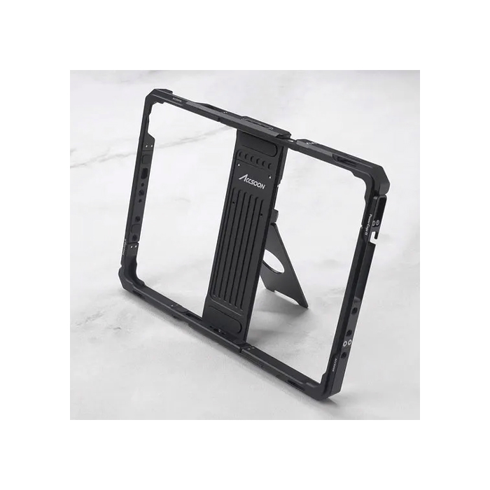 The Accsoon iPad PowerCage Pro II is engineered like no other iPad cage on the market today. It lets you place your iPad in a rugged precision-cut aluminum alloy casing that weighs only 405g.