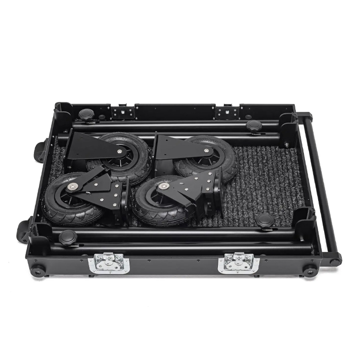 Adicam MINI weighs barely 28.5 kg and allows to transport the equipment even five times heavier. This model has four hand-folded wheels (8″-fi200 mm) which are equipped with sealed bearings. Swivel wheels have been enriched with breaks which guarantees more stability in difficult conditions. Each deck has been covered with facing to prevent displacing of the equipment. The cart can be folded to small dimensions suitcase which can be easy carried by most of the cars. Assembly and disassembly takes only 2 minutes and is incredibly effortless. The wide list of the available accessories allows for a configuration by choice.