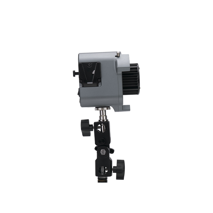 In addition to the included AC Power Supply, the fixture can be powered using the included Dual Sony NP-F Battery Plate or a D-Tap Battery, which can easily be attached to the V-Mount Quick Release, located on the side of the unit for easy operation.