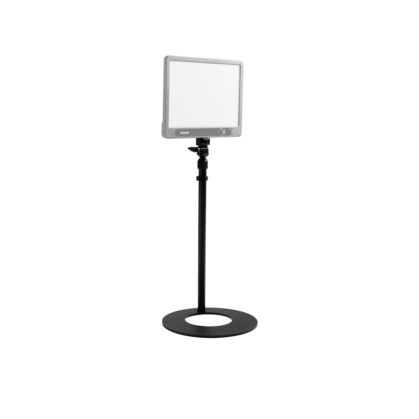 Den universelle 1/4"-20 skruefatning med locating pins sikrer kompatibilitet med et bredt udvalg af amaran-lys samt andre 1/4"-20-tilbehør. En justerbar tilt-mekanisme med låseknap muliggør præcis positionering – fra talking-head-opsætninger til top-down-indhold. Den vægtede stålbase med blød polstring i bunden giver øget stabilitet samtidig med, at den beskytter din arbejdsflade.