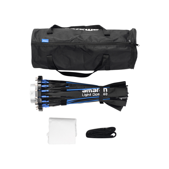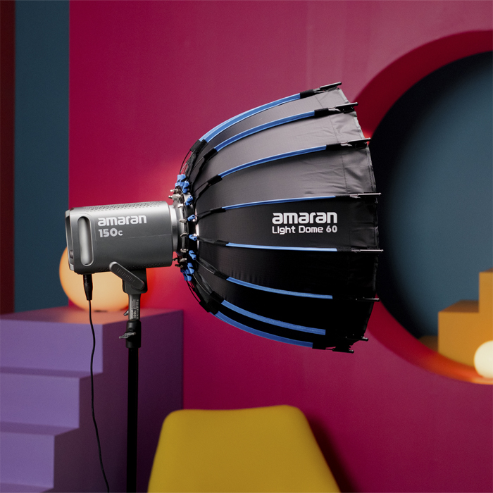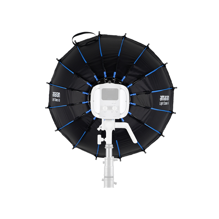 The amaran light dome 60's small 60cm (2ft) diameter is the perfect compact circular softbox for creating soft, round light in close-up, tight spaces. Its circular design creates an even, round eye light when capturing striking portraits, interviews, or close-up content.