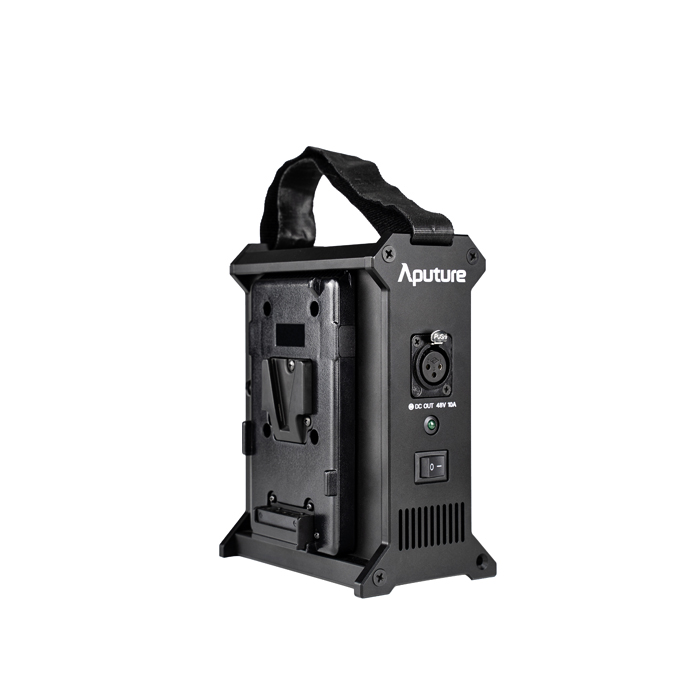 The Aputure 2-Bay Battery Power Station is a battery inverter that uses two industry-standard 14.4V/14.8V Gold or V Mount batteries and outputs a 48V DC current via 3-pin XLR. With this power station, users can bring the flexibility of battery power to any 48V lighting fixture, such as the Nova P300c or Amaran 100 & 200 series of LED lights.
