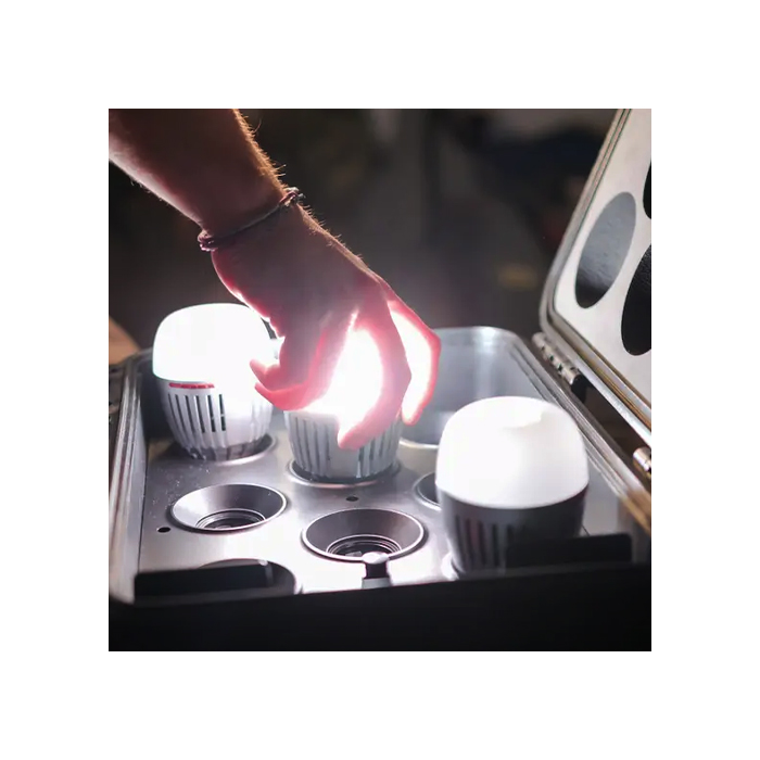 The Accent B7c 8-Light Kit Case is made for indie-filmmakers, owner-operators, and rental houses, featuring a durable hard shell case with the ability to simultaneously store, protect, and charge up to eight Accent B7c bulbs.