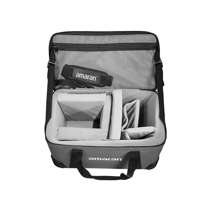 Protective carrying case for amaran 150c or 300c. Safely store and transport your amaran point-source fixture and power supply within one portable case. It features a protective padded design with carrying handle and detachable shoulder strap.