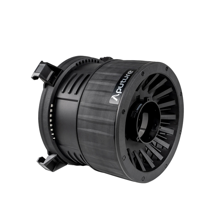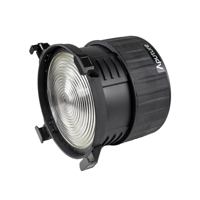 The Aputure F10 Fresnel is the first industry-standard 10-inch Fresnel made for modular Bowens Mount fixtures. With its wide 250mm (9.84in.) glass Fresnel, the F10 both immensely intensifies the output of a point-source LED, but also results in a quality of light lighting technicians will find similar to a Tungsten 5K or Studio 2K.