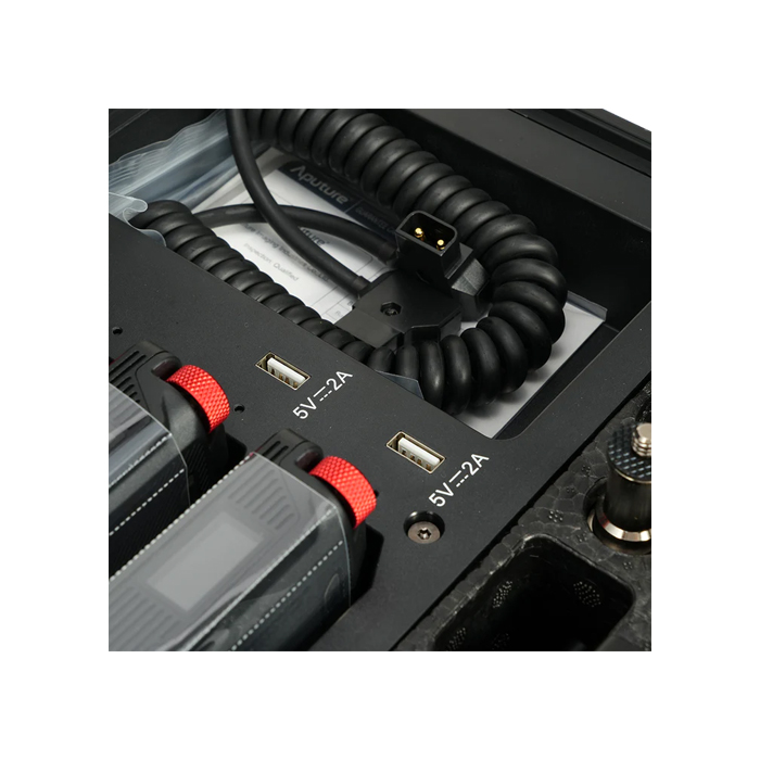For filmmakers constantly on the move who want to use V Mount or Gold Mount batteries, you can power the MC Pro 8-Light Kit using a D-Tap battery with the included D-Tap to D-Tap Power Cable – in lieu of AC power.