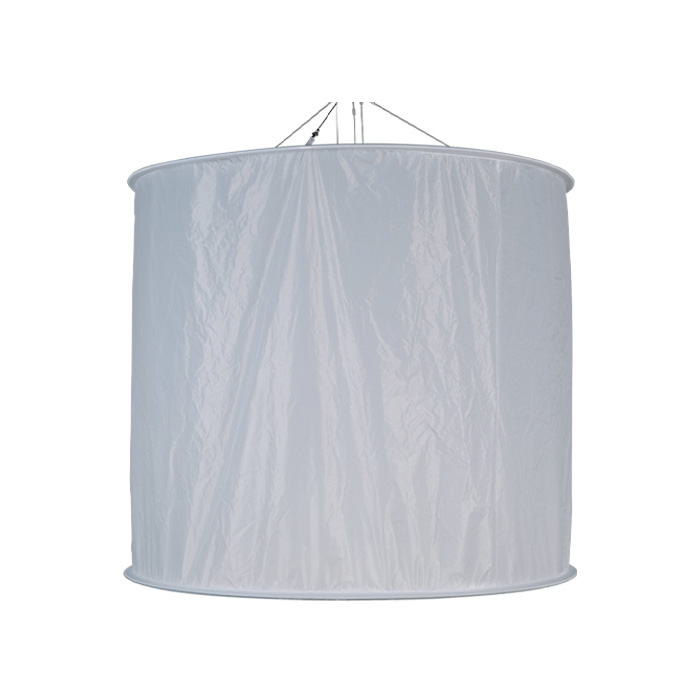 As a space light, it features a cylindrical design, which is achieved by mounting the light into a suspended frame. This allows the panel to spread light 360° over a wider area, reducing edge shadows, and making it suitable for creating soft light environments.