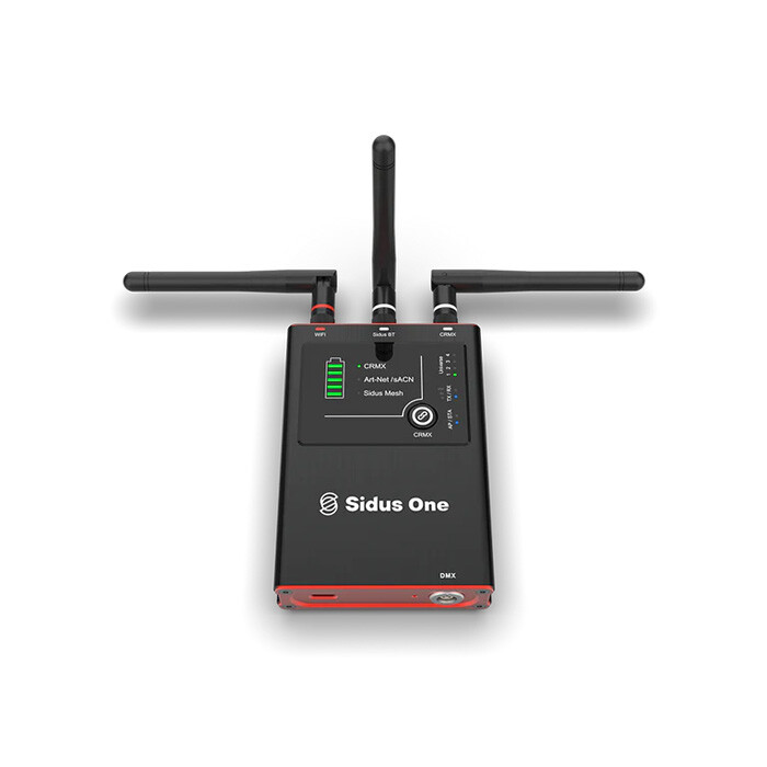 Sidus One fungerer som både sender, modtager og router. Uanset om du vil sende CRMX, DMX, Bluetooth eller modtage Art-Net, sACN så klarer den det hele. Med op til 18 timers batteritid er du dækket hele dagen.