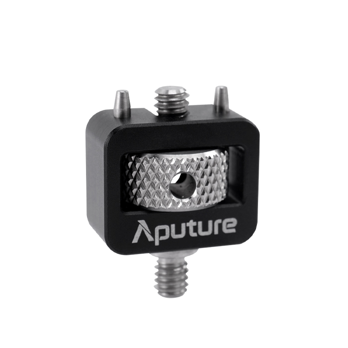 The Aputure Active USB Type-C to 5-Pin DMX In & Out Adapter Kit is a DMX adapter package that allows users to connect Aputure fixtures in series to a DMX network. Included in this kit is the USB-C to DMX Adapter along with three mounting accessories, which allow users to mount the adapter to magnetic surfaces, a Lightning Clamp, and a 1/4-20in screw thread via the 3/8in Locating Screw thread on the rear of the adapter.