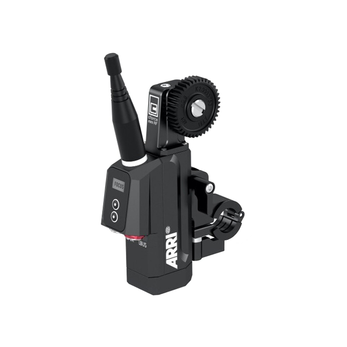 The cforce mini RF is an intelligent lens motor with integrated white-coded ARRI radio module, eliminating the need for an additional receiver unit mounted on the camera. The cforce mini RF can pair with up to three hand units for split focus, iris and zoom operation and provides full lens data when used with the WCU‑4 hand unit.
