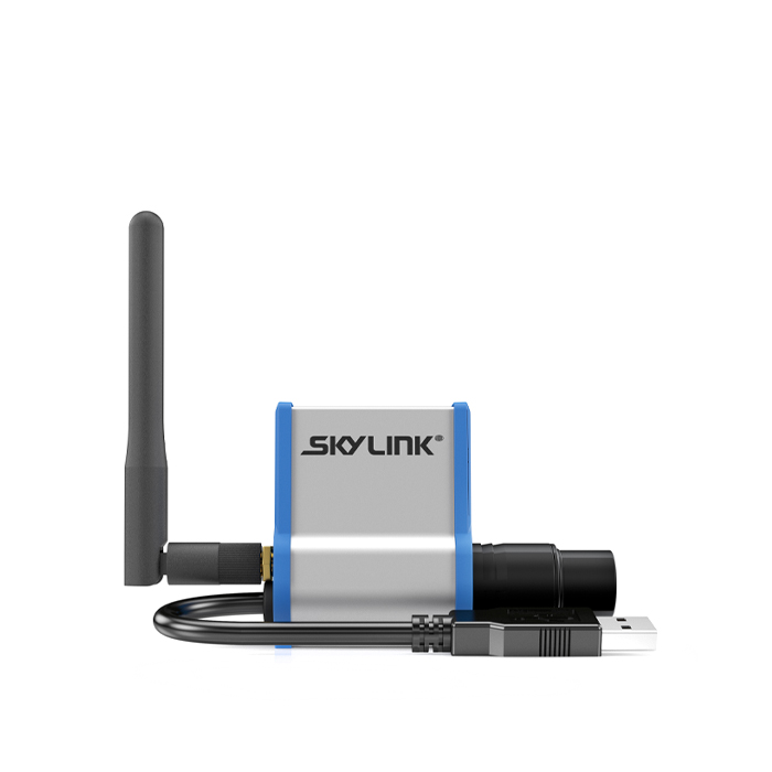 The SkyLink Receiver plugs directly into the DMX port on the back of any SkyPanel and receives power from the USB port directly below the DMX.This compatibility allows for SkyLink to work with all SkyPanel models including the S30, S60, and S120, offering a wireless solution for the entire SkyPanel family. The new SkyPanel S360 already has Wireless DMX built in and works seamlessly with the SkyLink products.