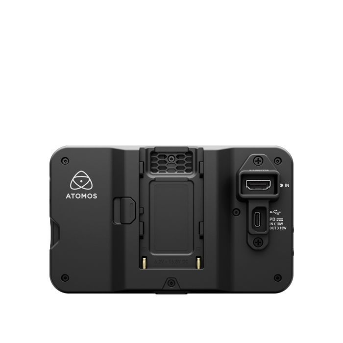 Despite adding even more hardware features, Atomos managed to keep Shinobi II's weight down to an incredible 210 grams and added holes for locating pins at the bottom for more secure mounting in any situation. The battery compartment is placed at the center of the device to improve balancing and maneuverability, while the included HDMI & USB-C locking adapter allows you to use Atomos' new line of locking cables for rock-solid connectivity.