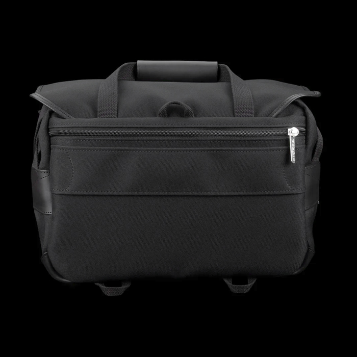 For utmost comfort, the bag features a leather grab handle that wraps around its strong webbing carry straps. Additionally, the bag includes an extra internal webbing strap sewn in at the back under the top flap. Used in conjunction with the front handle, to which the grab handle is attached, this feature enables safe carrying of the bag even when it's open.