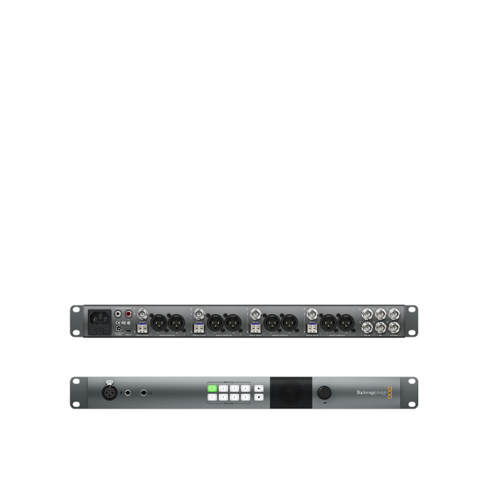 ATEM Studio Converter’s rack mount design has 4 bi-directional optical fiber connections so you can connect multiple camera converters and convert the optical fiber input to SDI and de-embed audio using XLR connections.