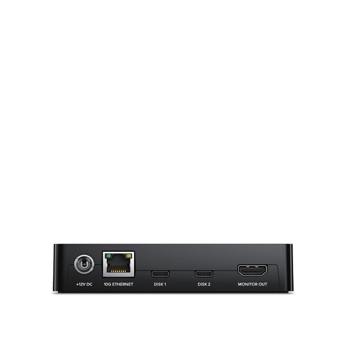 Blackmagic Cloud Pod features an extremely small and thin design because it doesn't have any storage internally! It’s also very quiet and very portable. It features two USB-C ports so it can host two separate USB disks on your network at the same time. The 10G Ethernet port means you get extremely high performance.