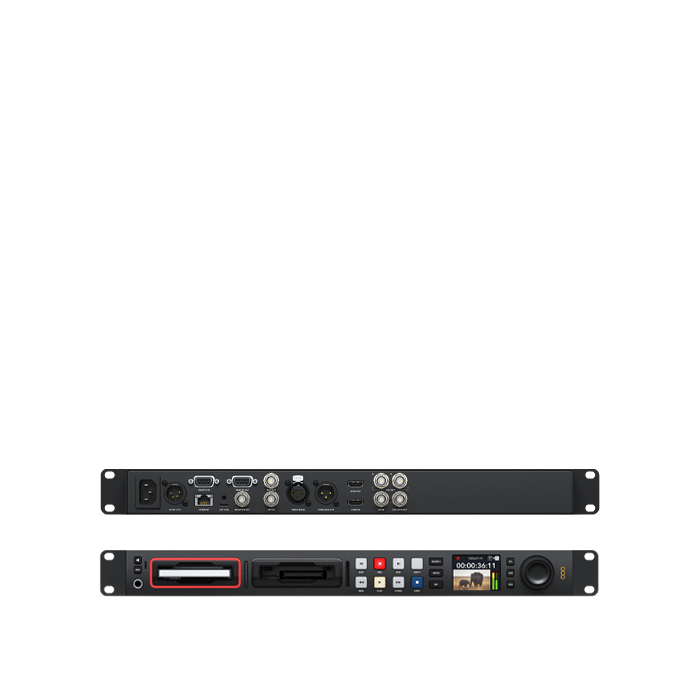 Records H.264, ProRes or DNxHD files onto SD/UHS-II cards or external USB disks in SD/HD formats to 1080p60. Includes timecode and reference generators, 3G-SDI in/out and HDMI out. Upgraded transport controls, front panel headphone and speaker, 6G-SDI and fill and key out. Supports all codecs up to 1080p60 and ProRes and DNxHD to 2160p30.