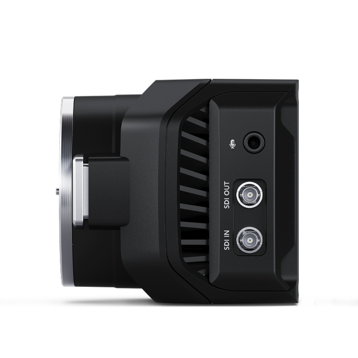 Blackmagic Micro Studio Camera includes built in microphones so you get sound included in the design making setup much faster. Each microphone is placed at the optimal position meaning you get better stereo separation than what is possible on a regular video camera. There’s also a 3.5mm audio input so you can connect to video microphones when you need to add larger more directional microphones with wind protection. Whether you’re using the built in microphones or attaching an external mic, the audio is embedded into the SDI and HDMI video outputs so you get perfect audio and video sync.