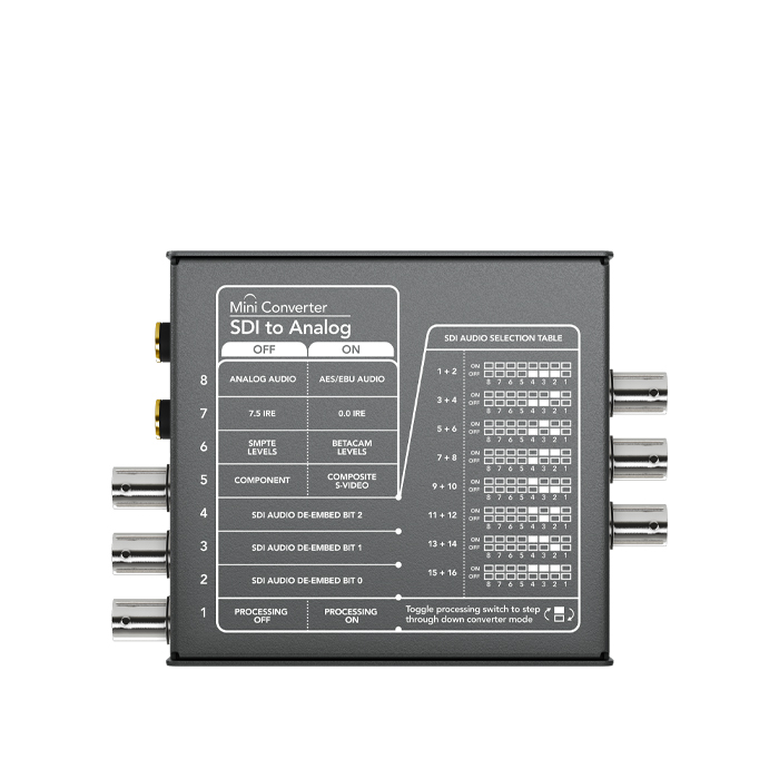 The perfect way to convert from SD and HD‑SDI to analog component, s‑video or NTSC/PAL composite. Mini Converter SDI to analog supports all SD and HD input formats up to 1080p30 and includes a down converter for when you need to convert from HD to standard definition analog formats such as s‑video and composite.