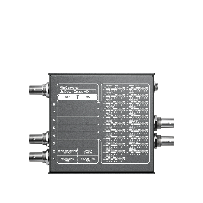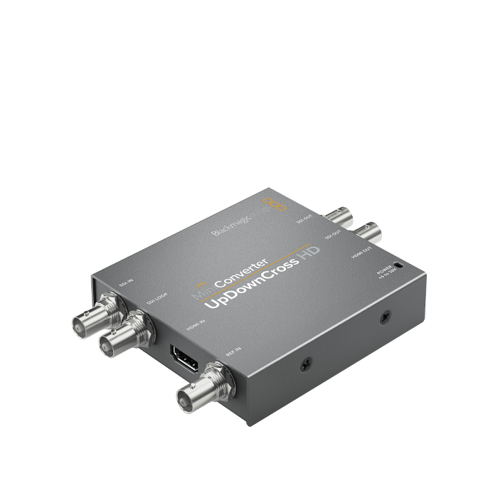 Mini Converter UpDownCross HD is a full standards converter that lets you convert any SD or HD video format to any other SD or HD video format. You get both SDI and HDMI inputs and outputs, along with reference input for built in re‑sync, high quality Teranex conversion algorithms, automatic audio delay for perfect AV sync, international power supply and more. Up, down and cross converter, includes full NTSC/PAL standards converter.