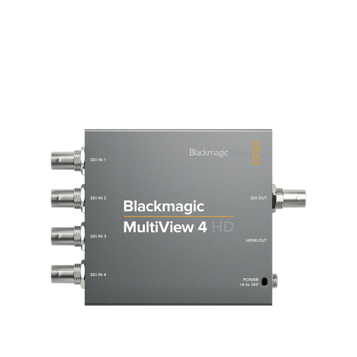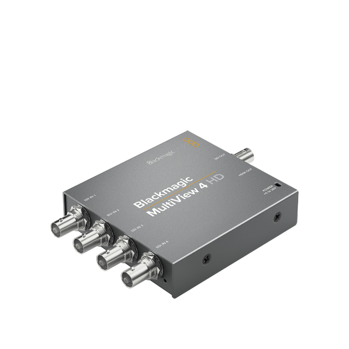 The new Blackmagic MultiView 4 HD model is a low cost multi viewer that lets you simultaneously monitor 4 different SDI video sources on a single display. Each view is a completely independent video monitor with overlays that you can turn on and off such as custom labels, audio meters and more.