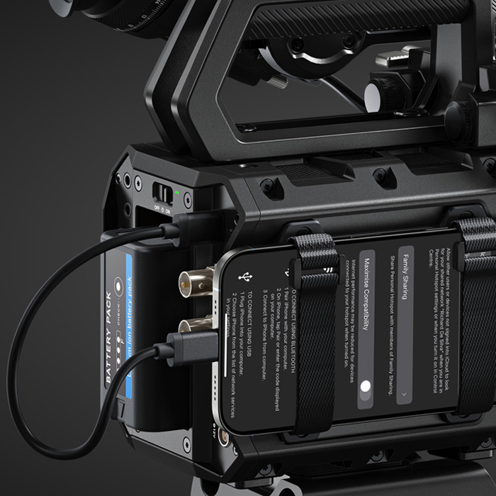 When uploading to Blackmagic Cloud, you can use an Apple or Android phone to get a connection to the internet via mobile data. Simply connect the phone to the USB-C port and Blackmagic PYXIS will configure for mobile data. Plus it works with the latest high speed 5G phones, as well as 4G phones. You can also connect via wired Ethernet using the camera’s Ethernet port. This lets you get your media out as you shoot so post production teams anywhere in the world can start work in real time! Plus on set grading can be done in a grading suite and synced back to DaVinci on set.