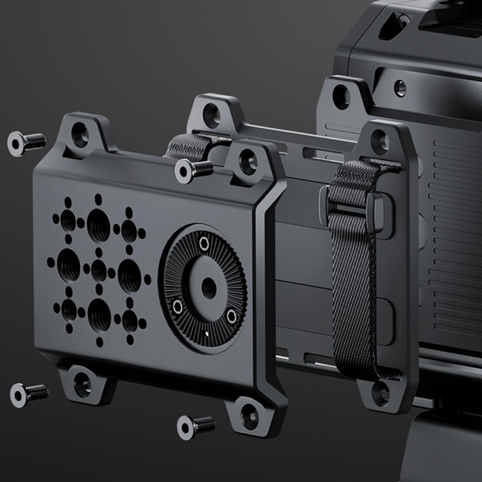 The innovative side plates expand the riggability of your camera even further. The standard plate included with Blackmagic PYXIS is made from the same aircraft grade aluminum as the camera body and features 2 1/4″ thread mounts and one 3/8″ thread mount, allowing you to add microphones, brackets or other accessories. Or you can attach the included SSD plate which offers a convenient location to securely attach a USB-C drive for recording or even a mobile phone for live streaming. The optional Rosette Plate gives you maximum flexibility with 5 1/4″ thread mounts and 4 3/8″ thread mounts for adding accessories, plus a rosette mounting point for attaching handgrips or extension arms.