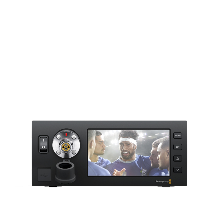 You get 12G-SDI for an HD or Ultra HD camera feed and 3 independent HD return feeds, along with standard connections for camera control, PTZ, two dual channel talkback intercoms, tracker talkback, tally and a 5 inch LCD screen for monitoring camera and return feeds. The Blackmagic Studio Fiber Converter also provides power for your remote cameras and accessories.