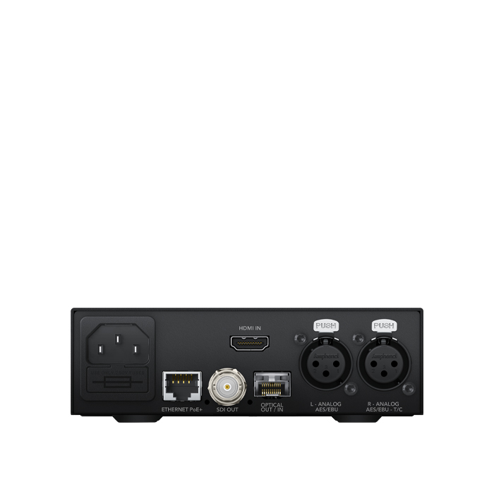 All Teranex Minis include an internal AC power supply, professional XLR analog and AES/EBU audio connections and an ethernet connection for remote management and PoE alternate power.