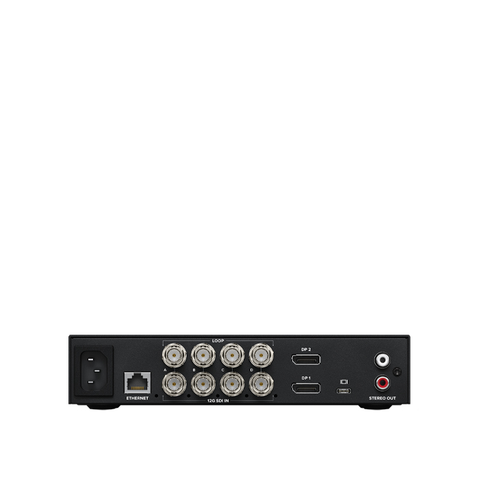 Advanced 8K DisplayPort monitoring solution for converting SDI sources to DisplayPort in all HD, Ultra HD and 8K formats up to 4320p60. Includes 2 full size DisplayPort and 1 USB‑C DisplayPort output connections, built in down converter, HDR formats, 33 point 10‑bit RGB LUTs, built in waveform, parade, vector and histogram scopes, monitor calibration for compatible monitors, and more.