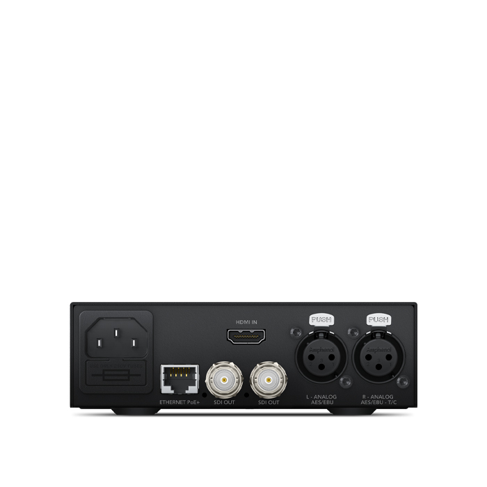 All Teranex Mini converters feature standard, professional broadcast quality connectors, including full size professional XLR audio connections and high speed BNC connections for handling the extremely high bandwidth of cutting edge 12G-SDI technology. All models feature a built in multi volt 90V-240V AC power supply and standard IEC AC power connector so you can use any regular power cable. The built in ethernet connection allows remote administration and can also be used to power the converter when connected to power over ethernet switch.