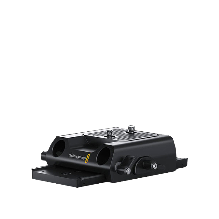 Blackmagic Studio Camera is easy to attach to a variety of tripods and even camera supports such as cranes, whether you’re in the studio or on location. The tripod mount makes setup easy and simply slides on common video tripod heads. It also has two horizontal mounting holes so you add optional rails for heavy items such as teleprompters matte boxes or heavy lenses.