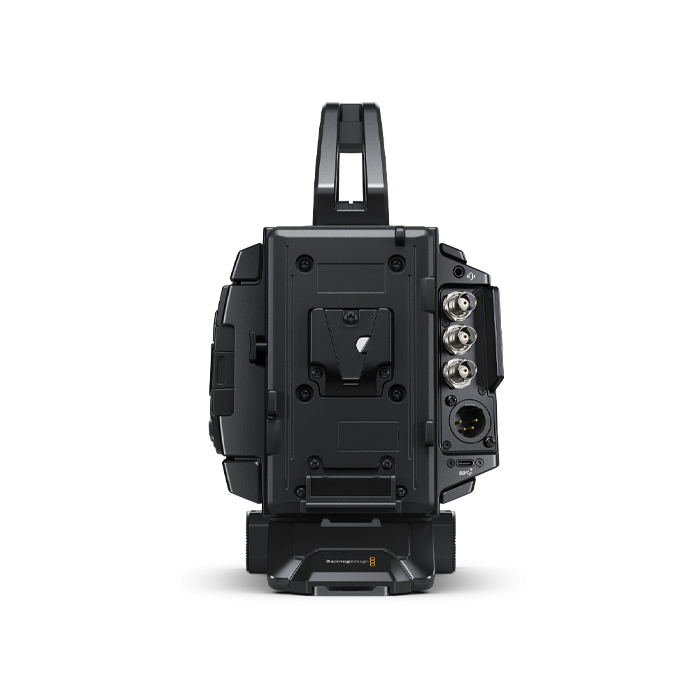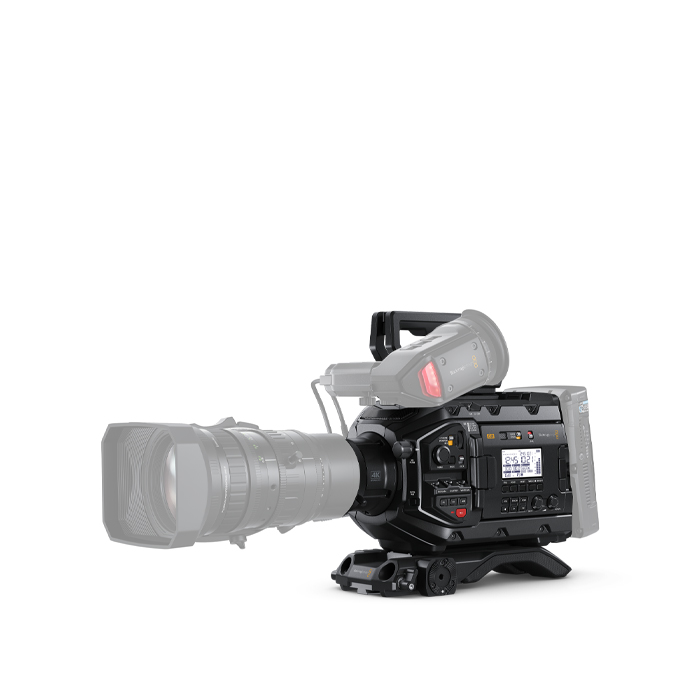 URSA Broadcast includes an advanced YRGB color corrector built in and full remote camera control. You can use B4 ENG lenses, large studio box lenses, or even change the lens mount and use any lens! Plus the optional Blackmagic focus and zoom demands let you control the lens from the tripod handles.