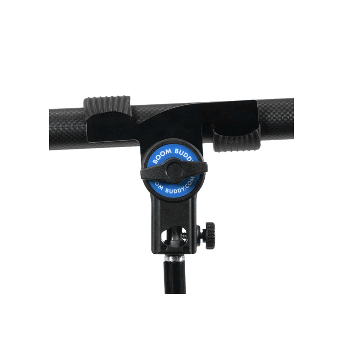 It fits perfectly into the Boom Buddy, which can be tightened by the side thumb screw.