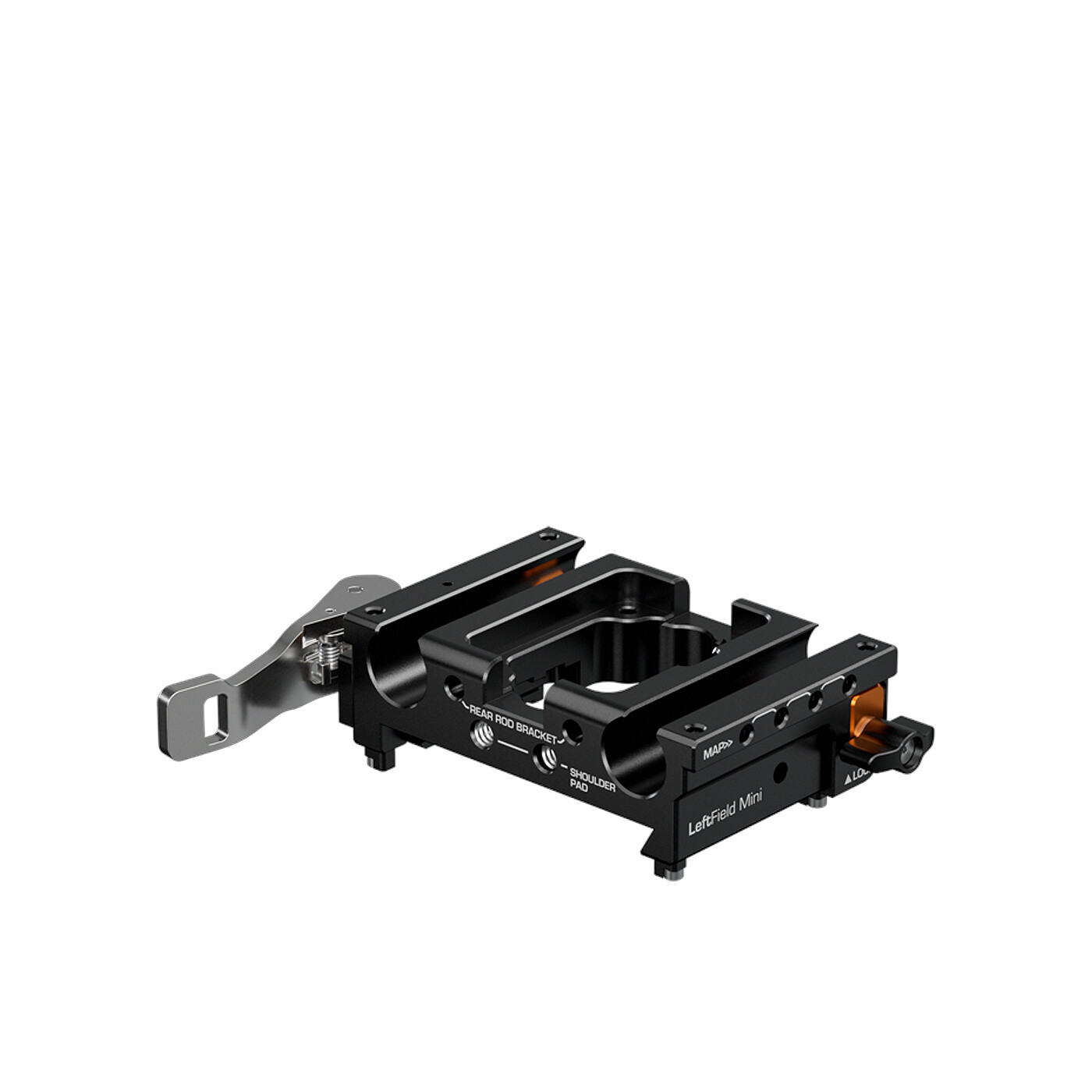 Med en længde på kun 60 mm er LeftField Mini Baseplate ekstremt kompakt og ideel til små eller low-profile kameraopsætninger. Den kan udvides efter behov: baseplaten har flere MAP M4-monteringspunkter på siderne og kan udstyres med en valgfri Rear Rod Bracket for ekstra funktionalitet under optagelser.