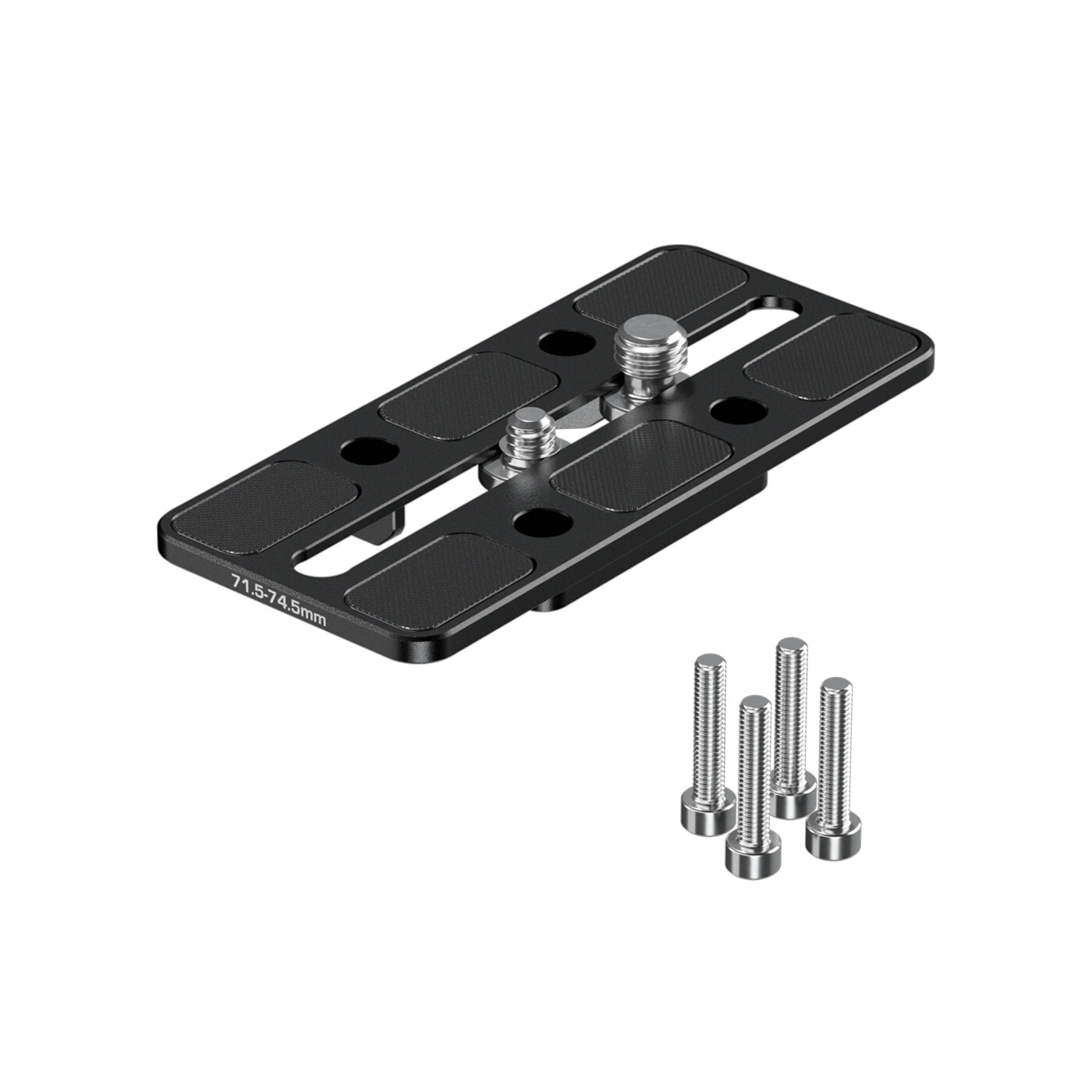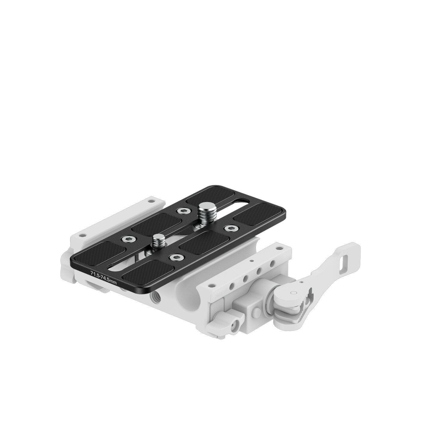 Riseren monteres hurtigt på baseplaten med fire M4-skruer og har captive 1/4″ og 3/8″ skruer, som kan flyttes for at passe til forskellige kamerahuse.