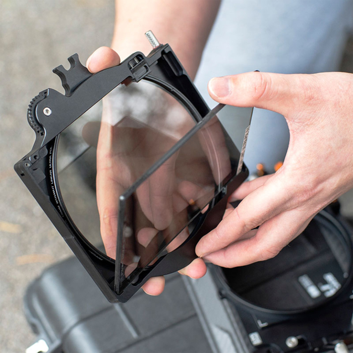 Included with this kit is the ONE Tray, accommodating two sizes of filters in one. Unlock the thumb screw to load a 138mm round filter, and secure the 4×5.65” filter using the spring-loaded wedge.