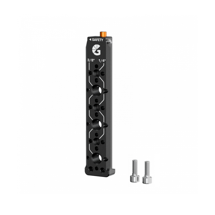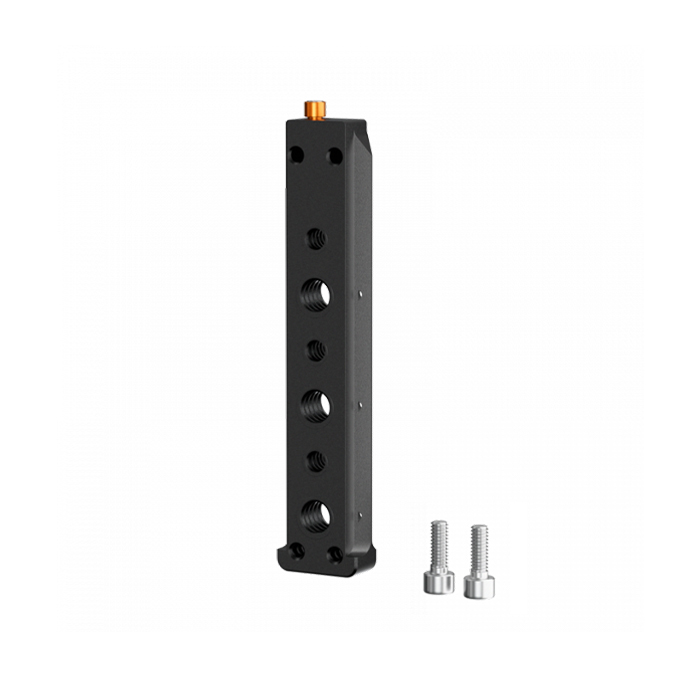 Two M4 points, spaced 10mm apart, are available on the top & bottom of the rail for attaching cheese plate adapters. This provides the option to mount the cheese stick from top or bottom plates. The cheese stick includes the required 10mm M4 screws.