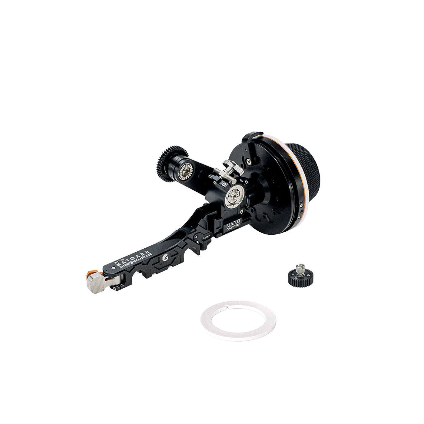 The Revolvr Swing Arm Cine (1:1.842) along with 0.8 ‐ 35 tooth and 0.8 ‐ 43 tooth gears is also a part of this kit and this allows you to set up on either side of the core bridge for complete flexibility in your set up and the industry standard gears effortlessly connect to the lens ring.