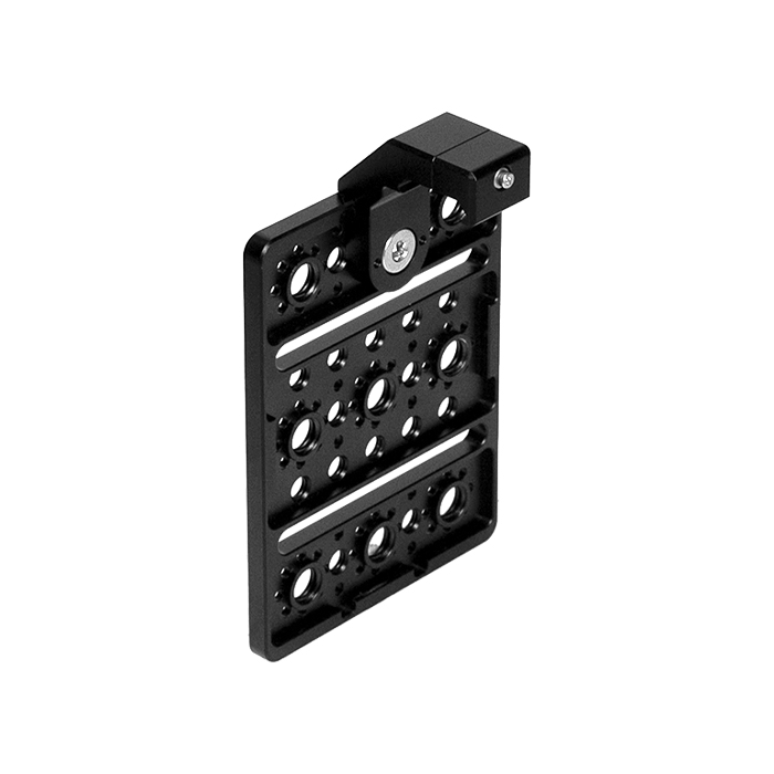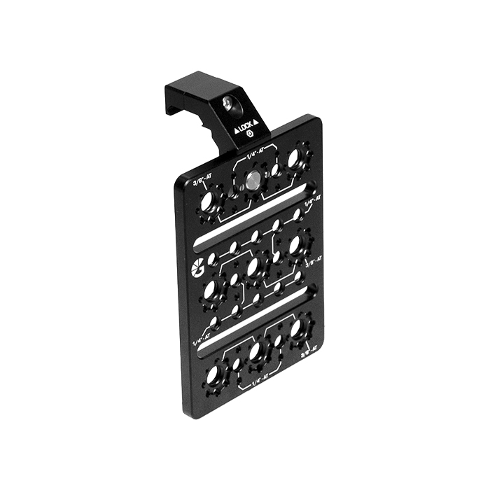 The NATO clamp attaches to the cheeseplate using a 3/8″ Anti-Twist mount. The cheeseplate can be mounted using any of the outer mounting points as required in either landscape or portrait orientation.