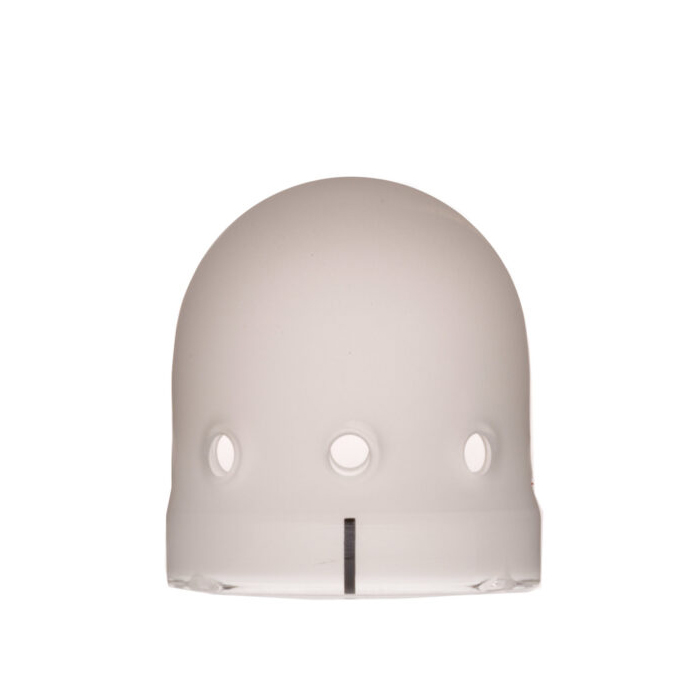 This frosted heat resistant glass dome protects the flashtube and modeling light from damage during set up or transport of the old Broncolor Miniplus Flash Heads.