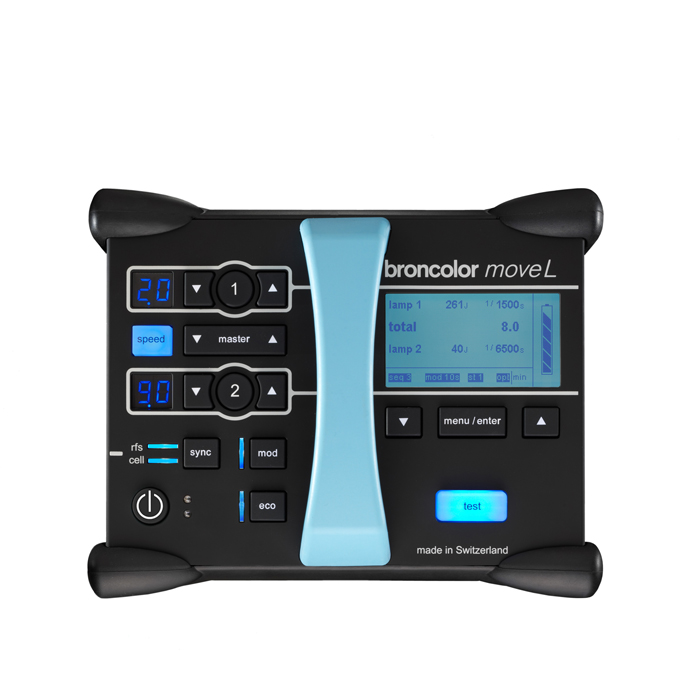 Move 1200 L is a lightweight athlete. With 1200 joules output, two lamp connections and a flash energy control range of 9 f-stops, you are prepared for any photographic task, anywhere.