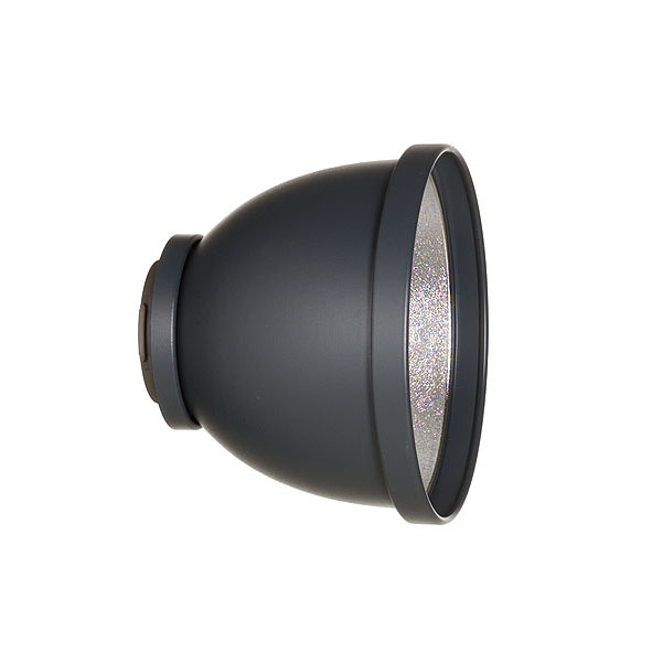 Broncolor standard reflector, slightly textured open reflector, optimised for Pulso G, Unilite and Minicom. A controlled centre emphasis can be achieved using a focusable Pulso G lamp.