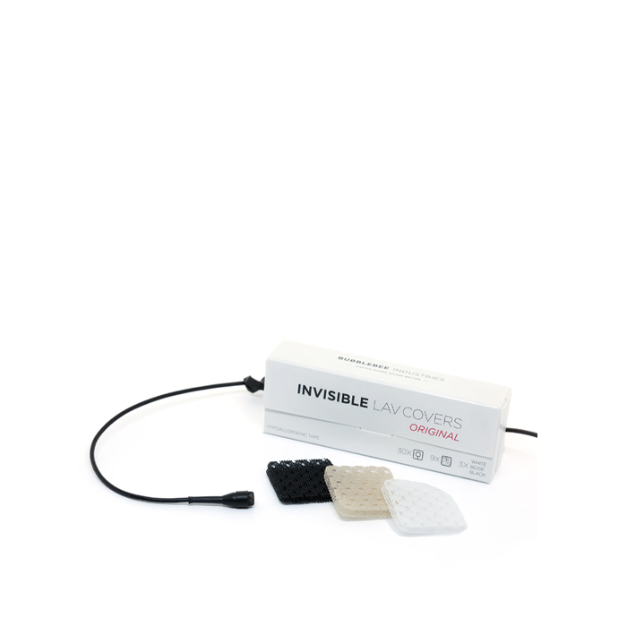 The Invisible Lav Covers allow you to easily mount and hide your Lavalier microphones directly on the skin or on clothes.