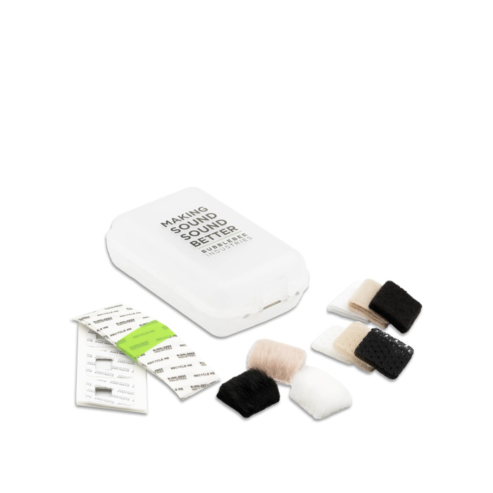 Bubblebee Moleskin is crafted using an eco-friendly bamboo material to be a low-profile, allowing for the placement of lav mics on the skin or under clothes, effectively minimizing friction noise whilst maintaining exceptionally discreet.
