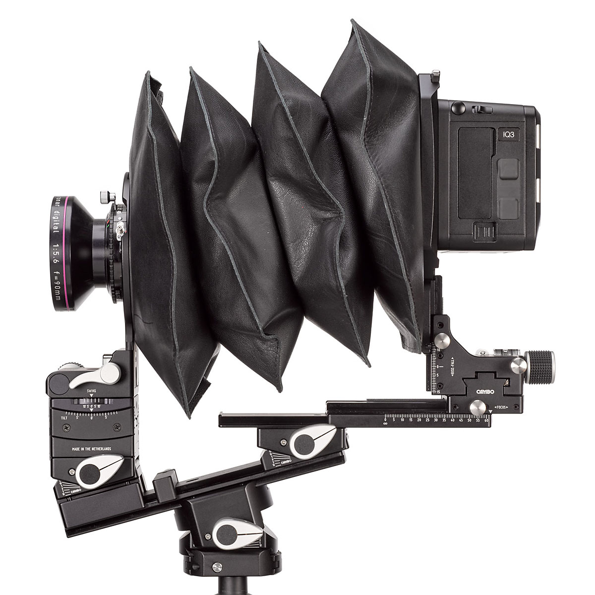The rear base tilt unit mounts between the rear standard focussing unit and the monorail, and makes an extra layer of sliding focus too. An additionally included feature is that this layer allows for 42mm more focus draw, compared to the original configuration.