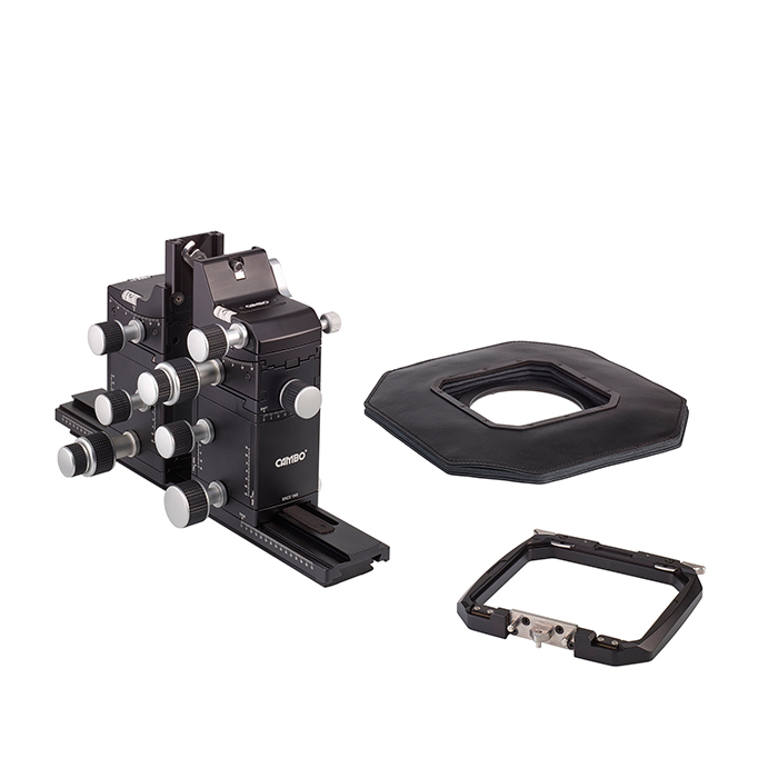 The Actus-MV base completed with the universal ACDB-989 interchangeable adapter holder and ACDB-254 bellows. The set-up for use with digital backs. ACDB-989 accepts the well-known Cambo SLW adapters which are available for virtually every digital back. Including legacy models.