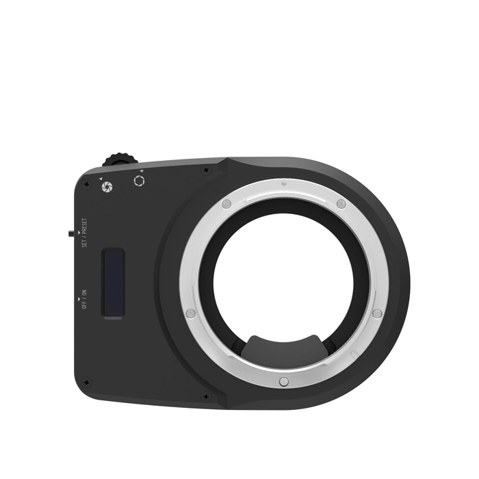 The CA-XCD adapter can be used to set the aperture of those lenses that have only motorised aperture. The internal battery is rechargeable. The used focal length and the current aperture are displayed on a OLED screen on the adapter plate.